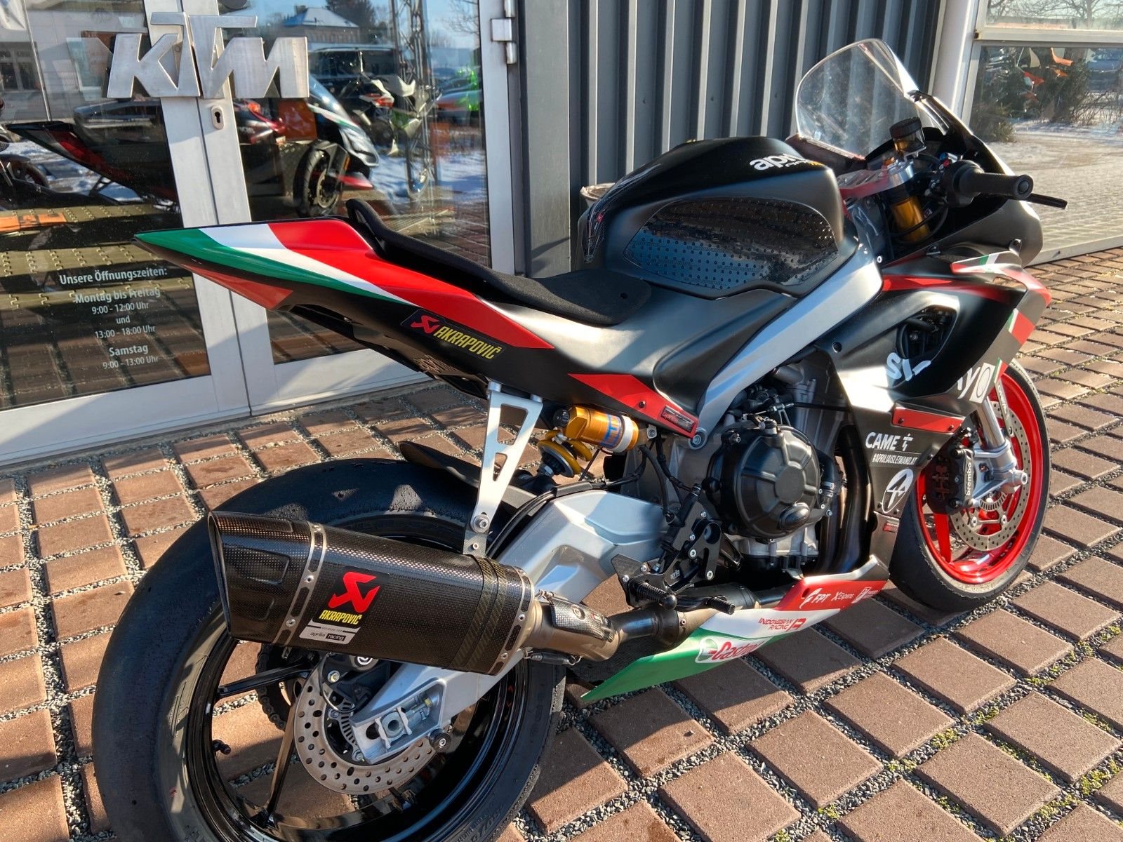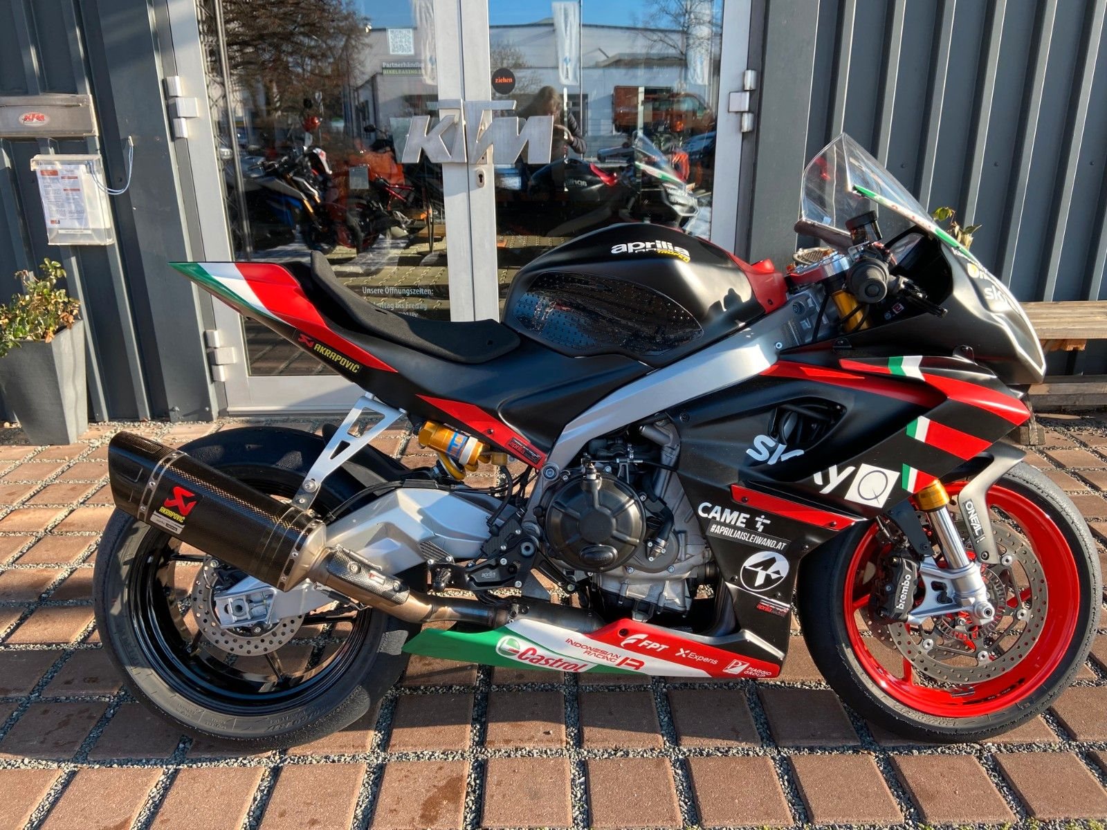 Das Motorrad wurde von der Fa. MCR in Regensburg auf Basis einer normalen RS 660 speziell mit entsprechend hochwertigen Teilen aufgenbaut, Fahrzeugbrief ist vorhanden.